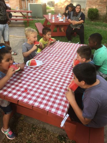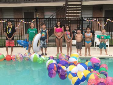 The month of June is water-filled month; the pool is open for the season! We have food, water games, and often get some special guests to teach everyone about fire and water safety. Come prepared to get wet in some way!